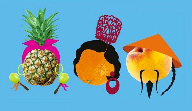 La firma Supperstudio, encargada de diseñar el packaging para los zumos Eroski, ha tomado como inspiración un baile de disfraces. El diseño propone un único color para crear mancha en el lineal desde el que se crea una imagen para cada producto y donde cada fruta representa un personaje distinto.