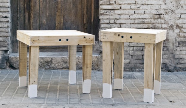 Las Pallys de Flou Flou D.A. son unas mesas auxiliares realizadas a partir de pallets recuperados de la calle. Su sistema constructivo está basado en el gran manual para la fabricación de mobiliario en madera Autoprogettazione de Enzo Mari. Si queréis verlas en directo, el próximo fin de semana, las Pallys estarán en el Mercado de Motores en Madrid.