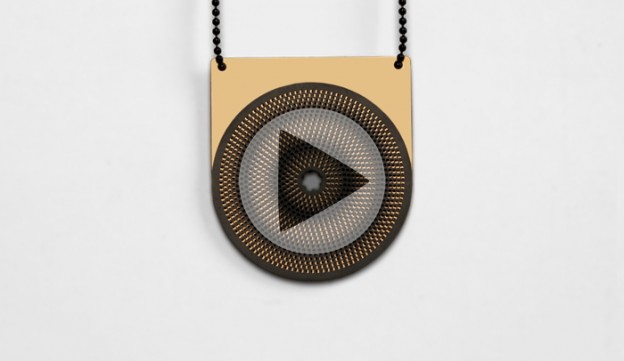 Una colección de joyas inspirada en un patrón de moiré. Una serie de cinco elementos en latón y acero inoxidable con dos patrones superpuestos que interfieren entre sí cuando se mueven, generando una imagen en movimiento de efecto casi hipnótico.