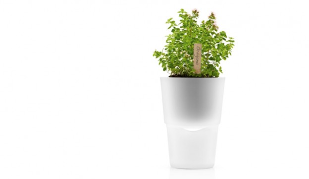 Una maceta de auto-riego, de Eva Solo, que permite a la planta absorber el agua que necesita en cada momento. Prefecto para mantener las plantas hidratadas durante las vacaciones.