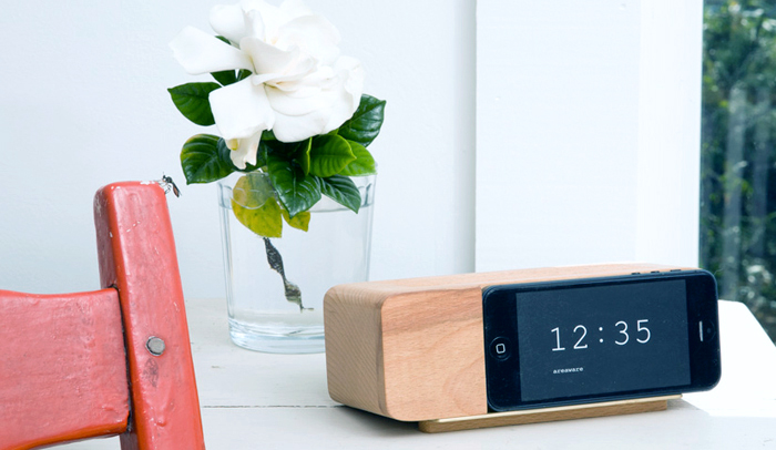 Diseñado por Jonas Damon para la firma de Brooklyn Areaware, ‘Alarm Dock’ es un soporte para el smartphone que, con la ayuda de una App gratuita, convierte el iPhone en un despertador digital. Su diseño permite que el dispositivo se recargue mientras está acoplado.