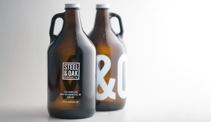 Una línea de botellas y growlers (jarras de cerveza) diseñada por AKA (Also Known As) Design Studio para la marca de cerveza artesanal canadiense: Steal&Oak Brewing. En palabras de los diseñadores ‘Su imagen simboliza la modernidad de hoy, mientras que rinde homenaje a la artesanía del pasado’.