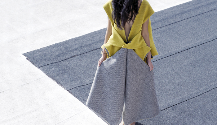 Como parte de su Capsule Collection 2Y, la diseñadora Yulia Yadryshnikova ha creado una pieza especial concebida no sólo para vestir, sino también para convertirse en una funda para el sofá Stanley de Luca Nichetto Design Studio.