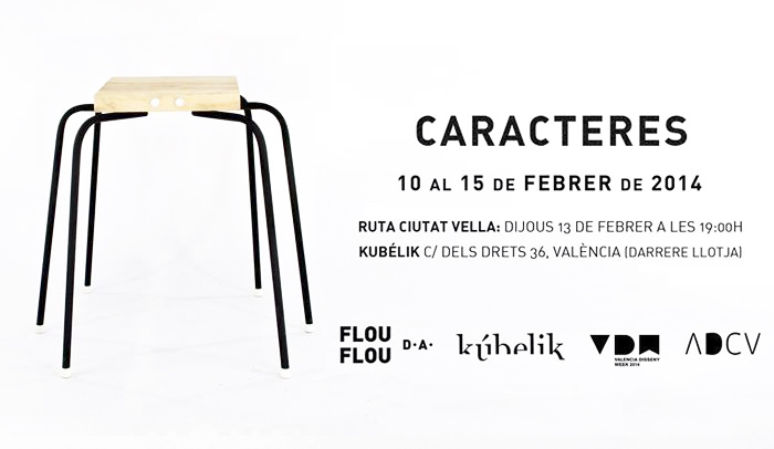 Esta semana podréis disfrutar de una muestra de los últimos trabajos que han pasado por la mesa de taller de FLOU FLOU D.A., dentro de las actividades de Valencia Disseny Week. CARACTERES estará en Kúbelik hasta el 15 de Febrero. No os lo perdáis!