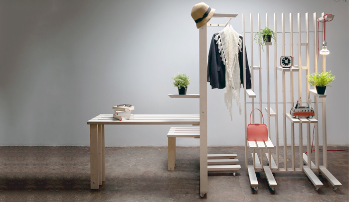 Una pieza modular, móvil y multi-función, inspirada en los tradicionales biombos separadores de espacios. Con varios accesorios diseñados y adaptados a su sistema de anclaje, Plug se adapta a cualquier situación, forma o espacio. Un diseño de Estudio Ji.