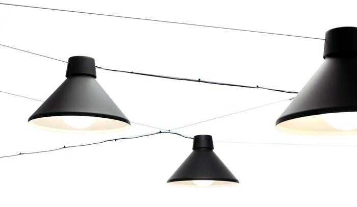 Estas lámparas colgantes diseñadas por Thomas Bernstrand para ZERO, están inspiradas en los cables que cuelgan por las calles del distrito japonés Daikanyama. La colección está pensada para espacios grandes y pequeños. Se puede jugar con la distribución de estos cables. Las lámparas están disponibles en varios colores.