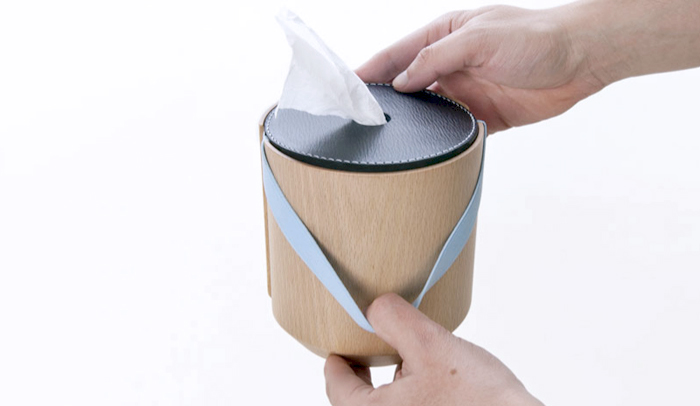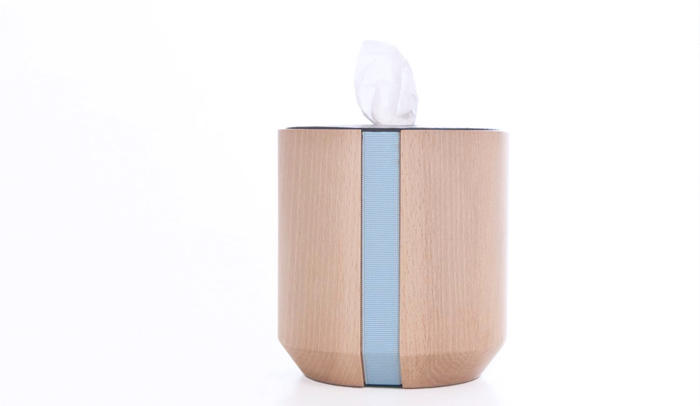 Un pequeño accesorio que funciona como dispensador de papel higiénico. Patch está elaborado en madera y dos tejidos, piel y elástico disponible en varios colores. Uno de los productos presentados por Cristian Reyes en NUDE 2014.