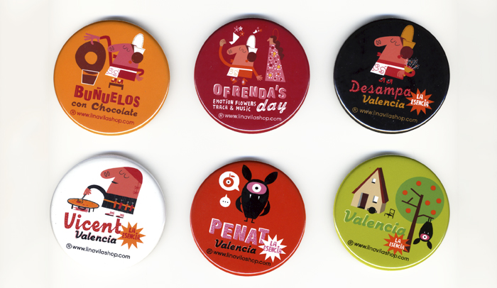 Hoy recuperamos la visión personal del ‘souvenir’ de la mano del Estudio Linavila. Una gama de productos que acercaron al público los signos de identidad de ‘la terreta’, sirviéndose del buen humor y de la ilustración más espontánea.